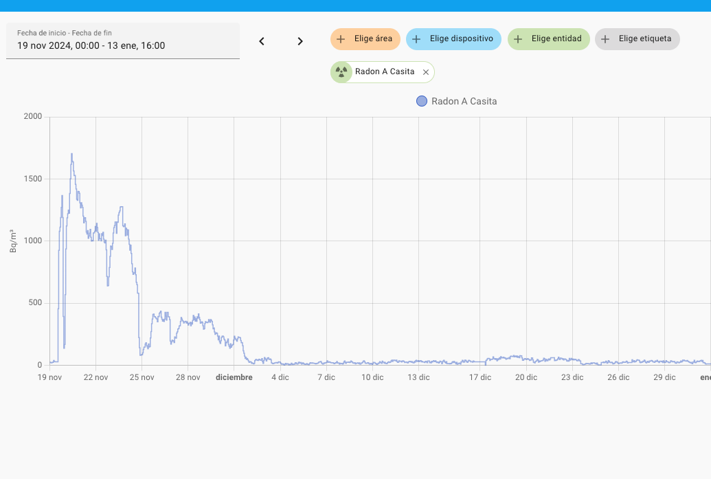 Antes de la puesta en marcha de la solución el valor medio de la concentración de radón en el salón y habitación estaba por encima de 1.200 Bq/m3.